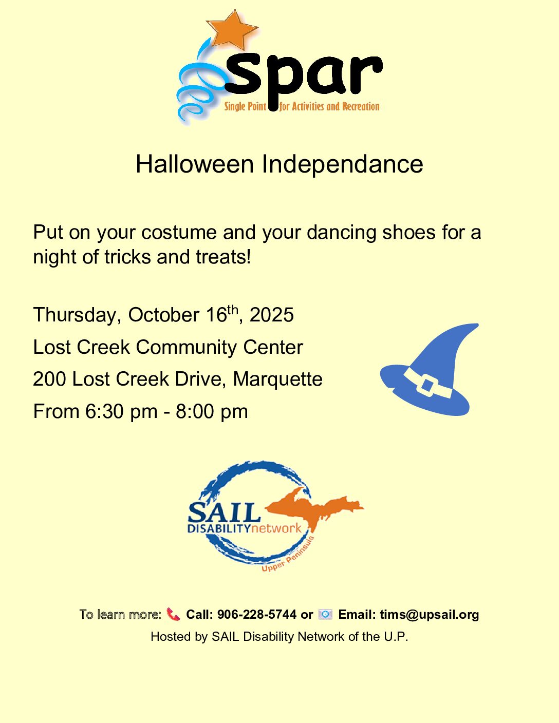 Lost Creek Community Center 200 Lost Creek Dr., Marquette, MI, United StatesImage description begins. The text on the flyer reads. Halloween Independance. Put on your costume and your dancing shoes for a night of tricks and treats at Lost Creek Community…