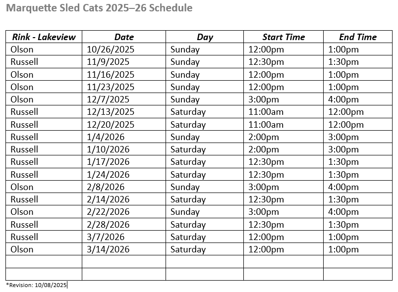 Sled Hockey U.P. Sled Cats team is on Facebook! To get more information about the Sled Cats, please visit our Facebook page.