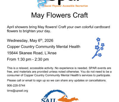 We hope any individual who might need SAIL in the U.P. will use us for peer support, independent living skills building, self-advocacy and gaining the confidence to live their best life.